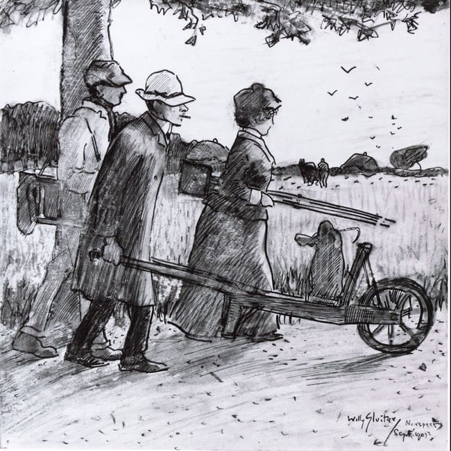 Willy Sluiter (1873-1949), Charles van Wijk in gezelschap van zijn vrouw Anna Maris en Willy Sluiter, Nunspeet, september 1905, Pastel 24 x 24 (Particuliere Collectie)